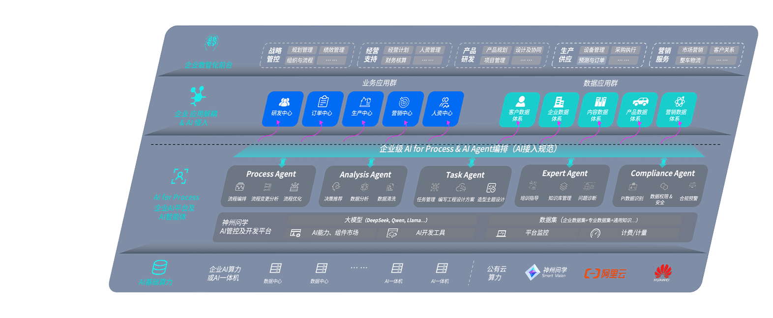 3118云顶集团问学智车解决方案是一套基于AI技术的汽车行业智能化系统,,,,覆盖从底层算力到顶层AI应用的全栈方案。。。。方案由算力层、、、模型层和应用层组成:算力层,,方案支持多种一体机配置,,,,具备云端灵活部署、、、、多云适配以及动态优化计算资源的能力;模型层,,3118云顶集团问学平台版提供了企业级AI应用一站式构建与管理平台,,支持基于后训练强化技术的汽车企业专属模型的训练、、、、评测和运营;应用层,,,3118云顶集团问学DeepSeek版提供包括超级员工、、、智能招采、、、、智能营销、、、、智能客服、、、、AI for BI等一系列解决方案,,,,可助力汽车行业实现数字化转型,,,让管理更智能、、、响应更敏捷。。